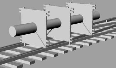 This is a track gauge developed to assist in maintaining the gauge through the switch blades whilst construction is in progress, The gauge has no legs with which to grip the rail head, it simply sits on top. The two lugs are positioned to be a sliding fit in the track and through the minimum flangeway. It acts in the same way as the three legged gauge to give gauge widening, irrespective of which way round it is. It has been found that the gauge can be slid through any piece of track either plain or point and crossing. If the gauge of the track is correct it will slide along sweetly, under gauge will cause it to jam whilst over gauge will allow it to move from side to side. It will check that the flangeway widths are not too narrow, whilst removing the gauge from the rails and inserting only one lug, will check if the flangeway is too wide. It will find the vertically or horizontally misaligned rail joints as well as the misalignment of Vee and wing rail. A versatile gauge to complement the three legged and NMRA style rail gauges you already have. |